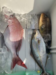 HOME > お知らせ一覧 > 最新の釣果 > 最新の釣果 2月13.14日近海便 2026年2月15日 んー難しい(泣) いい反応してる所もありますが 食い気が、、、 顔見るのでやっとな感じでした 13日 マダイ、ツバス、トラフグ、アオハタ、ホウボウ 14日 マダイ、ツバス、トラフグ、アオハタ、シオ ビックヒットもありましたがライン止まらず出されて出されて最後にプッツンでした。 KAIEIMARU 予定カレンダー KAIEIMARUの出船やお休み情報をご確認ください。 予定が入っていないところは、ご予約募集中です。お気軽にお電話ください。 ※.カレンダーが見れない場合はこちらから ご予約は090-7699-3874から KAIEIMARUその他、ご不明点やご質問などお気軽にお問い合わせください。 お問い合わせやご予約は 電話 090-7699-3874 へ 最新の投稿記事一覧 最新の釣果 2月13.14日近海便 2026/2/15 最新の釣果 23日近海便になりました 2026/2/14 最新の釣果 休み続き金曜日から出船 2026/2/11 最新の釣果 2月7日近海便 2026/2/7 最新の釣果 2月6日近海便 2026/2/7 過去の投稿記事アーカイブ 過去の投稿記事アーカイブ 月を選択 2026年2月 (13) 2026年1月 (27) 2025年12月 (31) 2025年11月 (23) 2025年10月 (25) 2025年9月 (28) 2025年8月 (33) 2025年7月 (22) 2025年6月 (25) 2025年5月 (18) 2025年4月 (21) 2025年3月 (25) 2025年2月 (24) 2025年1月 (22) 2024年12月 (34) 2024年11月 (25) 2024年10月 (24) 2024年9月 (25) 2024年8月 (27) 2024年7月 (34) 2024年6月 (15) 2024年5月 (20) 2024年4月 (15) 2024年3月 (21) 2024年2月 (22) 2024年1月 (21) 2023年12月 (30) 2023年11月 (20) 2023年10月 (33) 2023年9月 (27) 2023年8月 (25) 2023年7月 (28) 2023年6月 (16) 2023年5月 (24) 2023年4月 (29) 2023年3月 (25) 2023年2月 (25) 2023年1月 (32) 2022年12月 (38) 2022年11月 (49) 2022年10月 (46) 2022年9月 (35) 2022年8月 (33) 2022年7月 (27) 2022年6月 (27) 2022年5月 (26) 2022年4月 (23) 2022年3月 (28) 2022年2月 (32) 2022年1月 (21) 2021年12月 (24) 2021年11月 (9) 2021年9月 (1) 2021年8月 (1) Twitter Share Pocket Hatena LINE URLコピー -最新の釣果